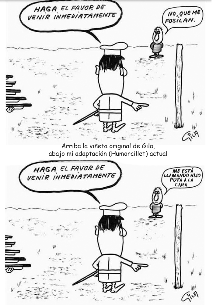 Recordemos que el gran Gila se salvó de un fusilamiento en el régimen franquista: “Nos fusilaron al anochecer, nos fusilaron mal”. Aquel acontecimiento marcó la carrera de uno de los grandes genios del humor negro en España. La Fiscalía no ve delito de odio en el chat de militares que pedían «fusilar a 26 millones de hijos de puta»