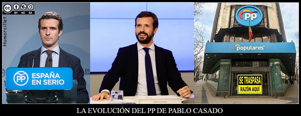 La evolución del PP de Pablo Casado: Empezó bien afeitado, al estilo Albert Rivera, la cosa no funcionó y para mejorar la situación del Partido se dejó la barba al estilo Santiago Abascal, la cosa siguió sin funcionar. Tras reflexionar mucho se dió cuenta de que la culpa no era de su imagen, sino de la imagen de su Partido, así que su decisión ha sido cambiar la sede central del PP como hizo el Generalísimo Franco que también cambió su sede del Valle de los Caídos.