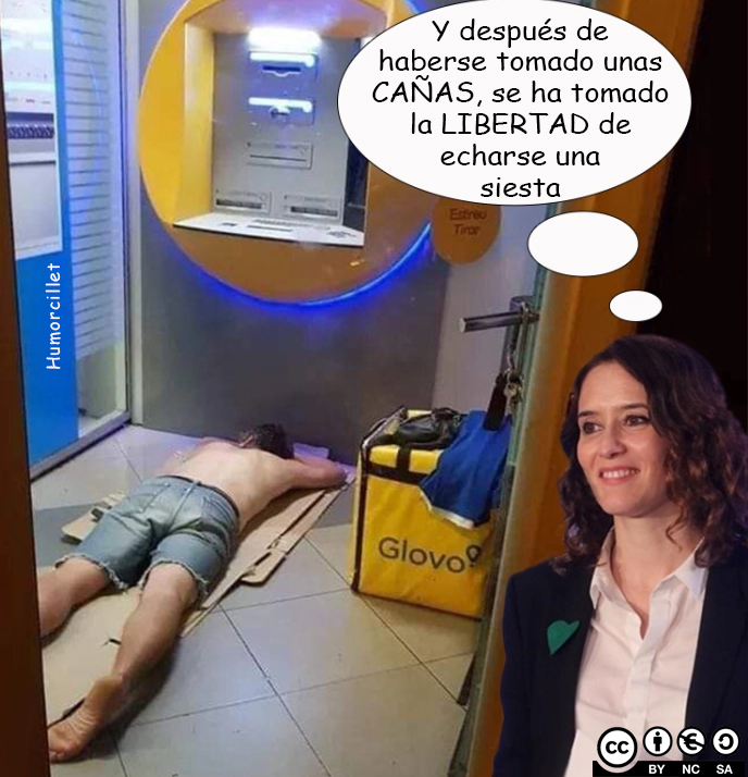 A ver cuanto le dura al currante de repartos la libertad para poder dormir dentro de la sucursal de un Banco, por qué por lo visto los Bancos también tienen la libertad de cerrar sucursales y oficinas a todo trapo, pero ellos lo celebran a lo grande y seguro que no con cañas, ni con boicot a los productos catalanes.